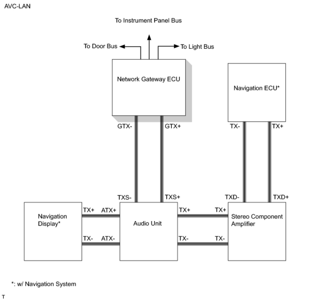 (2) A single, Automobile Vinyl (AV) wire is used for BEAN communication. A twisted-pair wire is used for CAN and AVC-LAN communication.