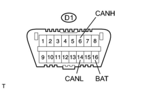 When any DTC for the CAN communication system is output, first measure the resistance between the terminals of the DLC3 to specify the trouble area, and check that there is no short in the CAN main bus line, between the CAN bus lines, to B+, or to GND.