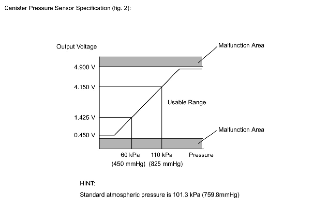 - (b) Check the EVAP pressure again when it has stabilized. This pressure is the 0.02 inch leak criterion.