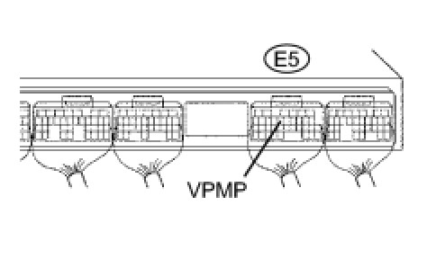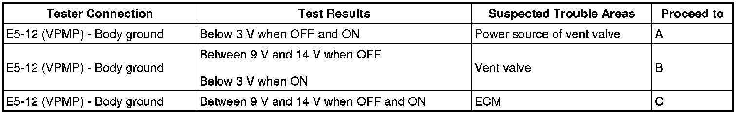 (c) Measure the voltage between terminal VPMP of the ECM connector and the body ground when the vent valve is turned ON (closed) and OFF (vent) using the tester.
