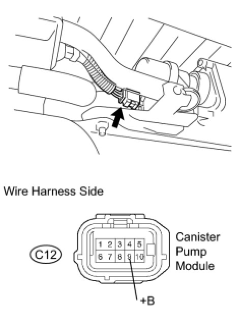 (b) Disconnect the C12 canister pump module connector.