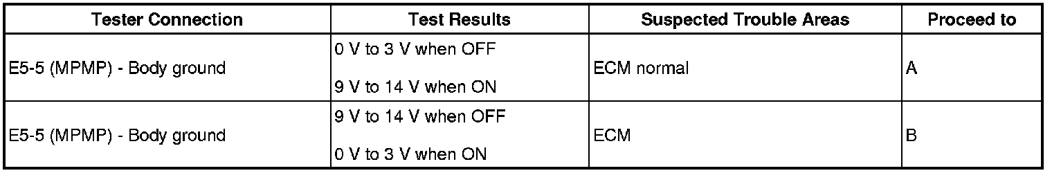 (b) Measure the voltage between MPMP terminal of the ECM connector and the body ground when the leak detection pump is turned ON and OFF using the tester.