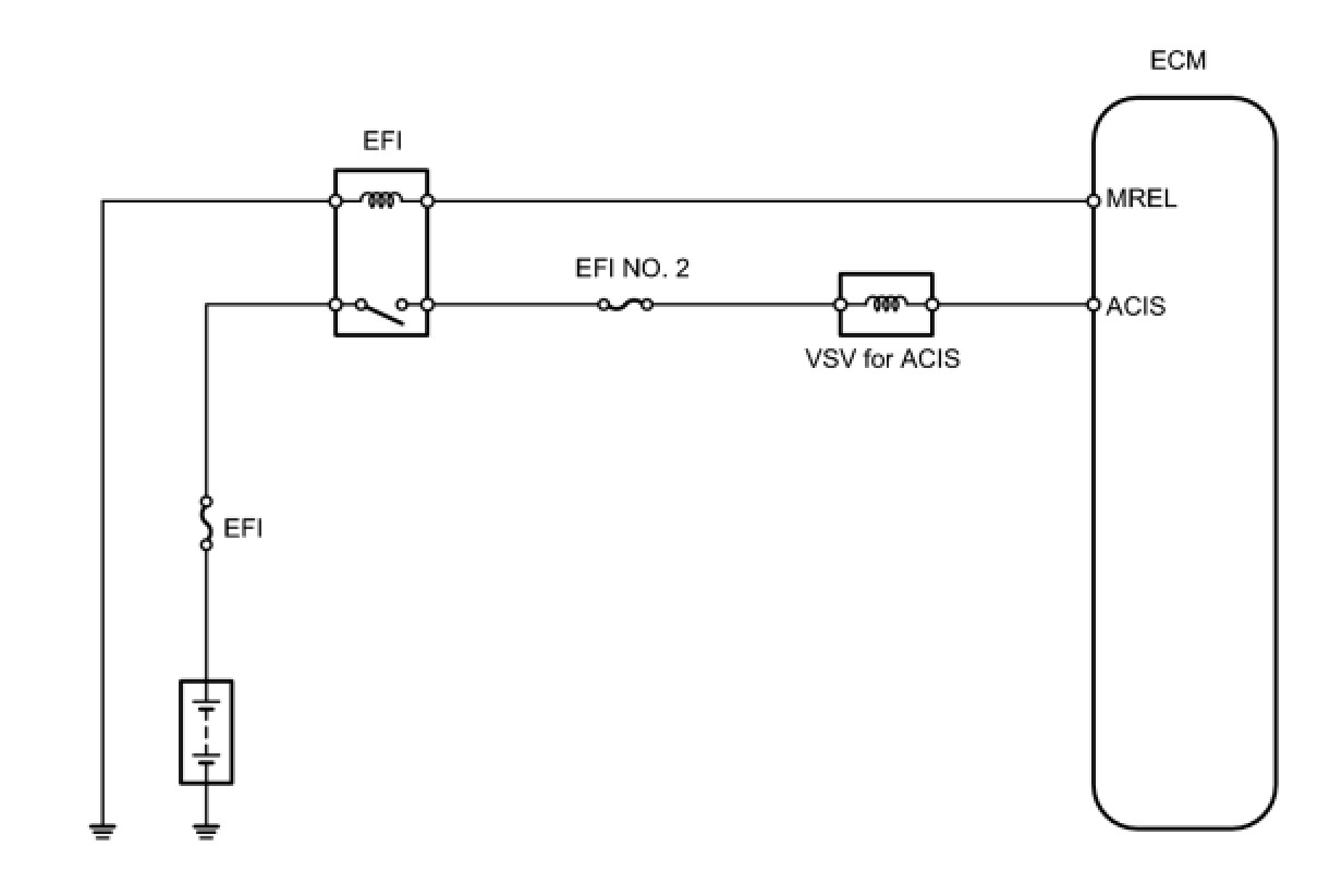 This circuit opens and closes the Intake Air Control Valve (IACV) in response to the engine load in order to increase the intake efficiency (ACIS: Acoustic Control Induction System).