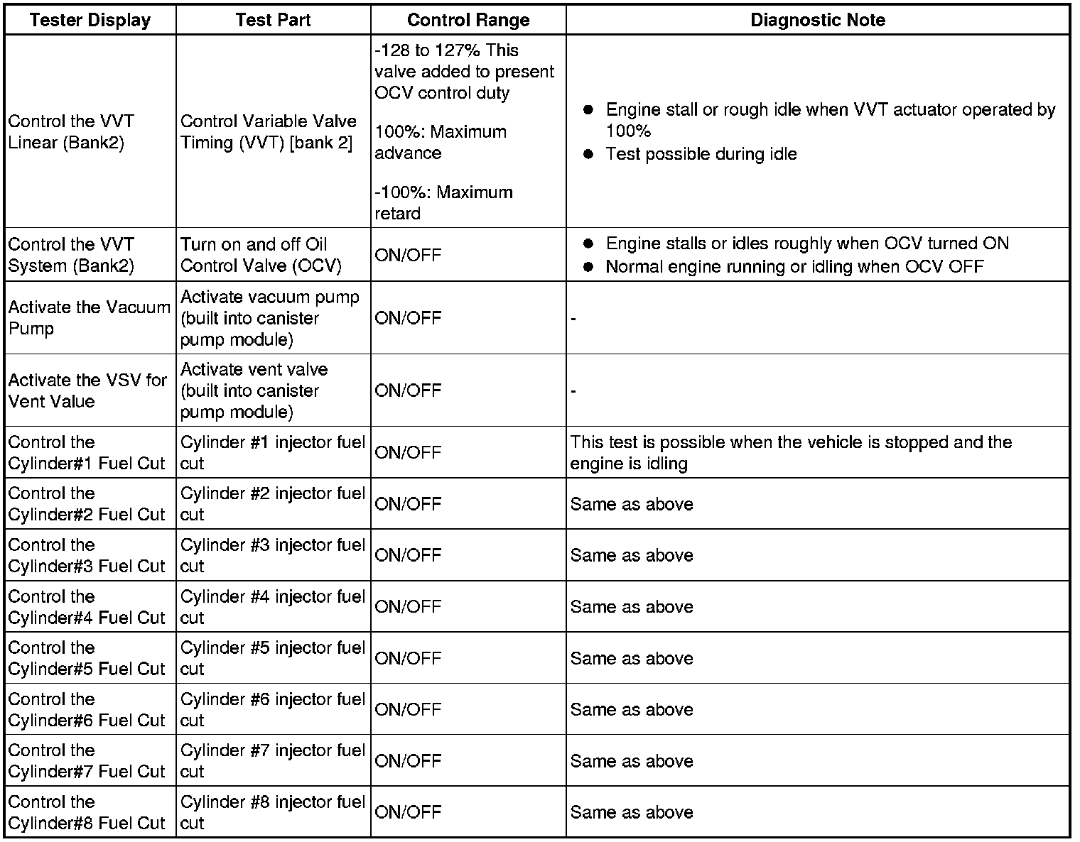 - *: Data List values are only displayed when performing the following Active Tests: Control the VVT Linear (Bank1), Control the VVT Linear (Bank2), Control the VVT Exhaust Linear (Bank1) and Control the VVT Exhaust Linear (Bank2). For other Active Tests, the Data List value will be 0.