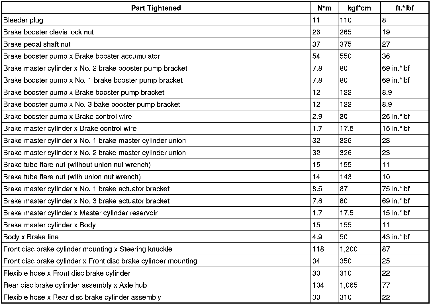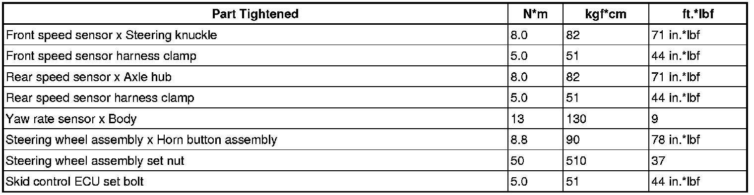 SERVICE SPECIFICATIONS: TORQUE SPECIFICATIONS