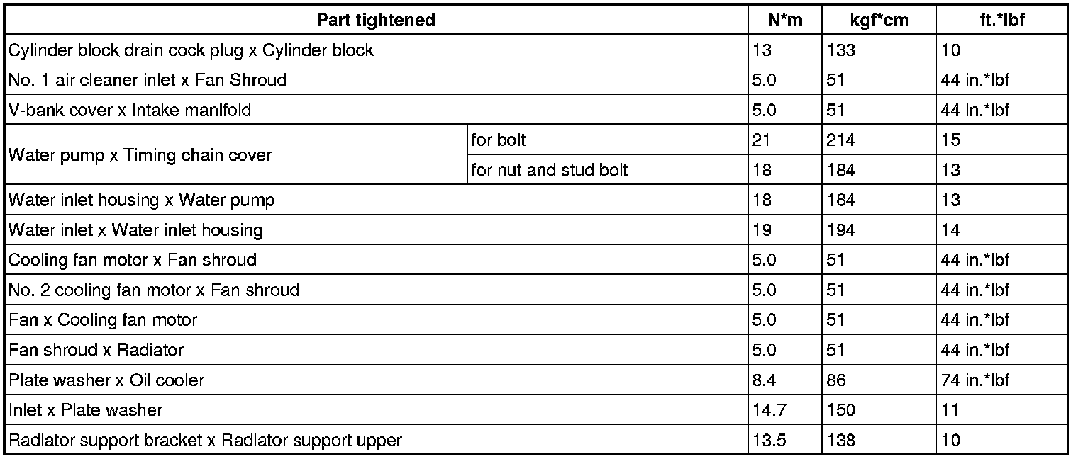 SERVICE SPECIFICATIONS: 3UZ-FE COOLING: TORQUE SPECIFICATIONS