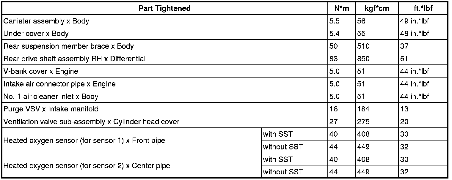 SERVICE SPECIFICATIONS: 3UZ-FE EMISSION CONTROL: TORQUE SPECIFICATIONS