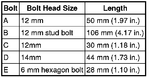 - Each bolt length is as shown in the table.