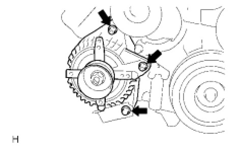 (d) Remove the 2 nuts, bolt and generator.