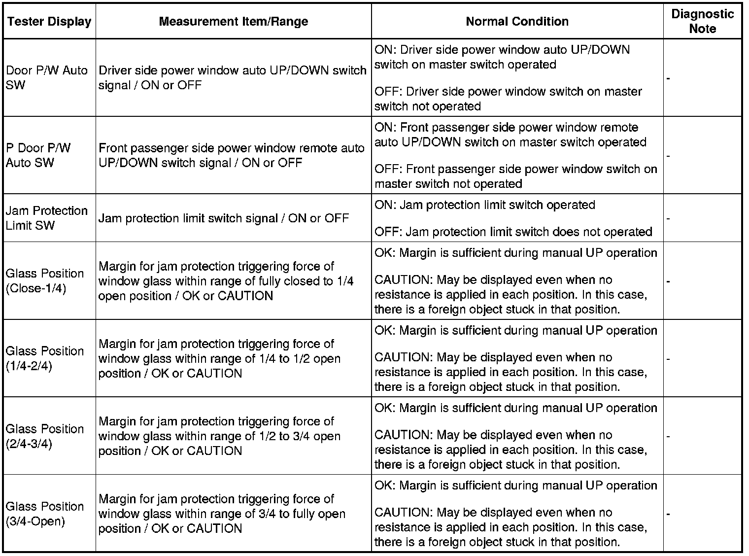 WINDSHIELD / WINDOWGLASS: POWER WINDOW CONTROL SYSTEM: DATA LIST / ACTIVE TEST