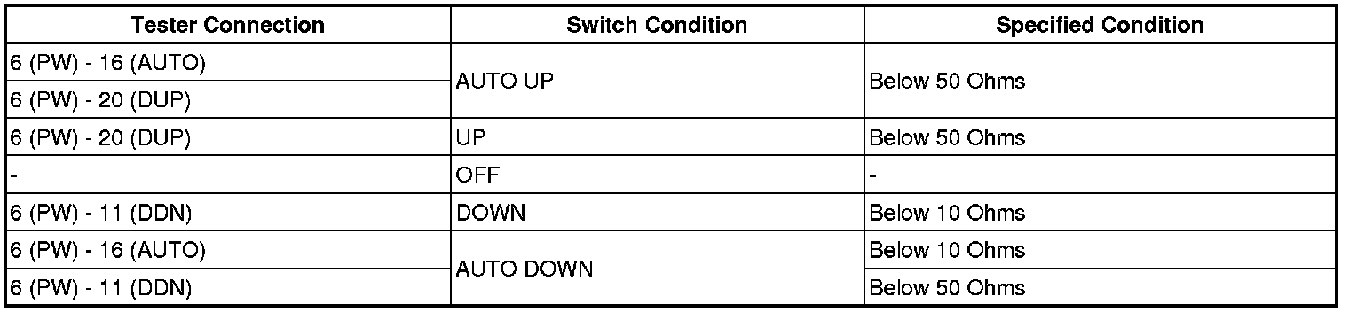 7. CHECK WIRE HARNESS (DOOR ECU FRONT LH - POWER WINDOW MOTOR)