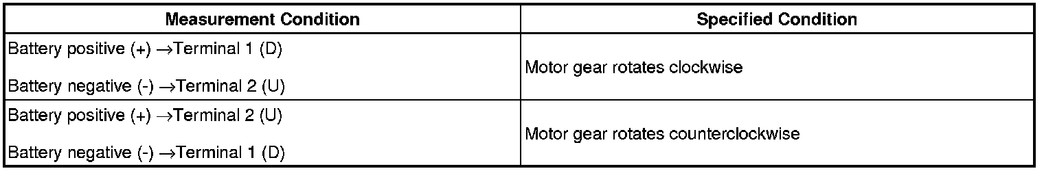 (1) Check that the motor operates smoothly when the battery voltage is applied to each terminal of the connector.