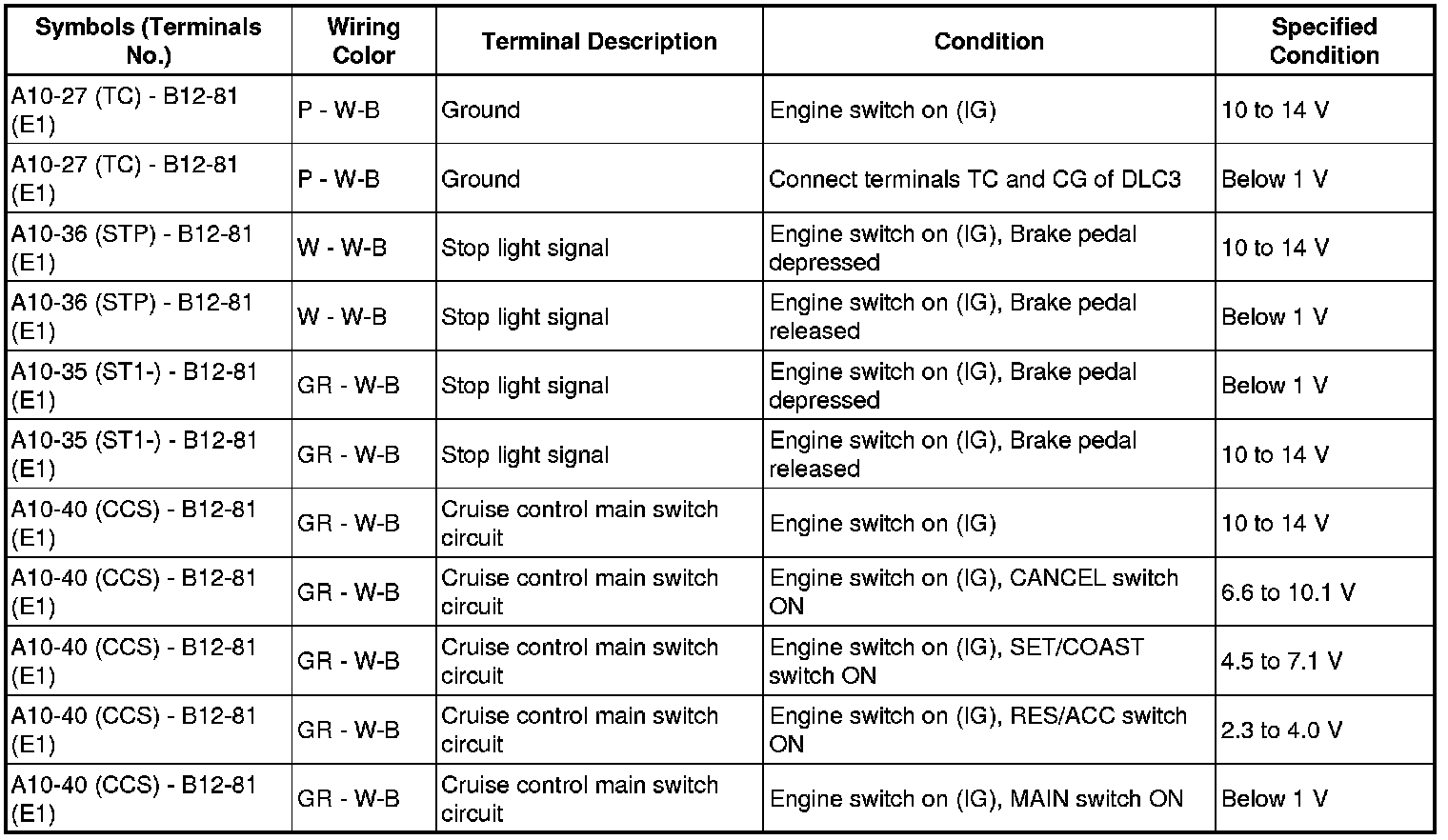 : CRUISE CONTROL SYSTEM: TERMINALS OF ECM