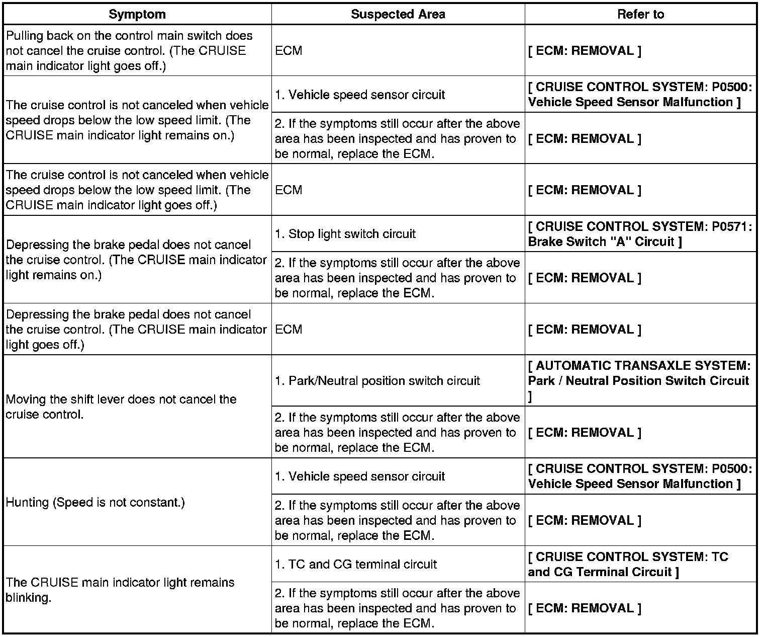 HINT: Be sure to perform the SYMPTOM SIMULATION procedure before replacing the ECM. If these symptoms do not persist, the cause of the problem may be a poor intermittent electrical contact (open or short) of a wire harness or connector.