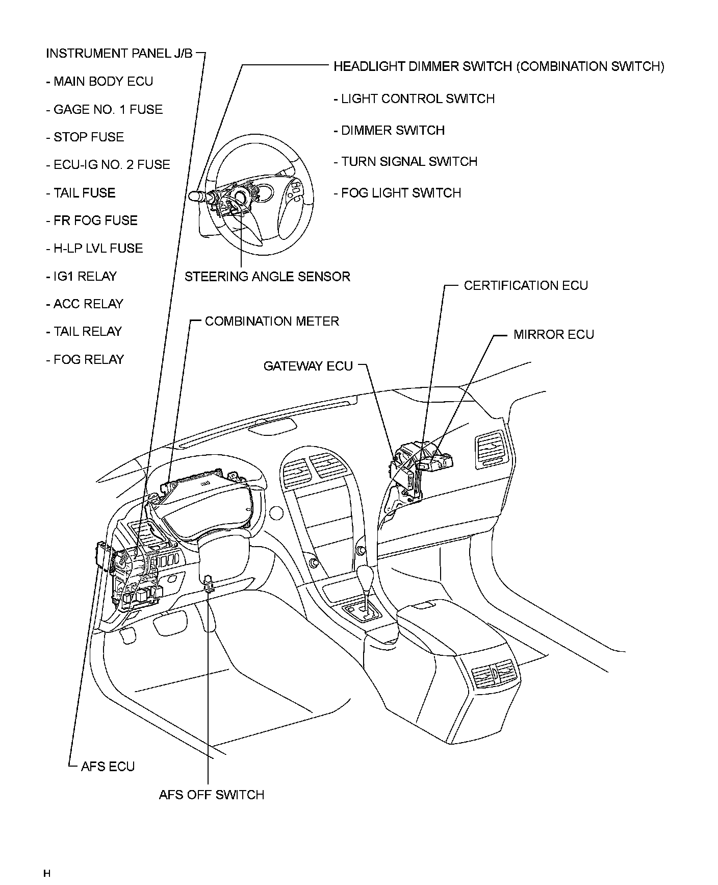 Headlamp Alignment Control Module: Locations