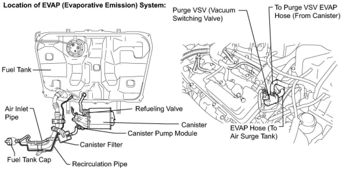 While the engine is running, if a predetermined condition (closed-loop, etc.) is met, the purge VSV is opened by the ECM and fuel vapors stored in the canister are purged into the intake manifold. The ECM changes the duty cycle ratio of the purge VSV to control purge flow volume.