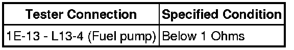 (1) Disconnect the L13 fuel pump connector.