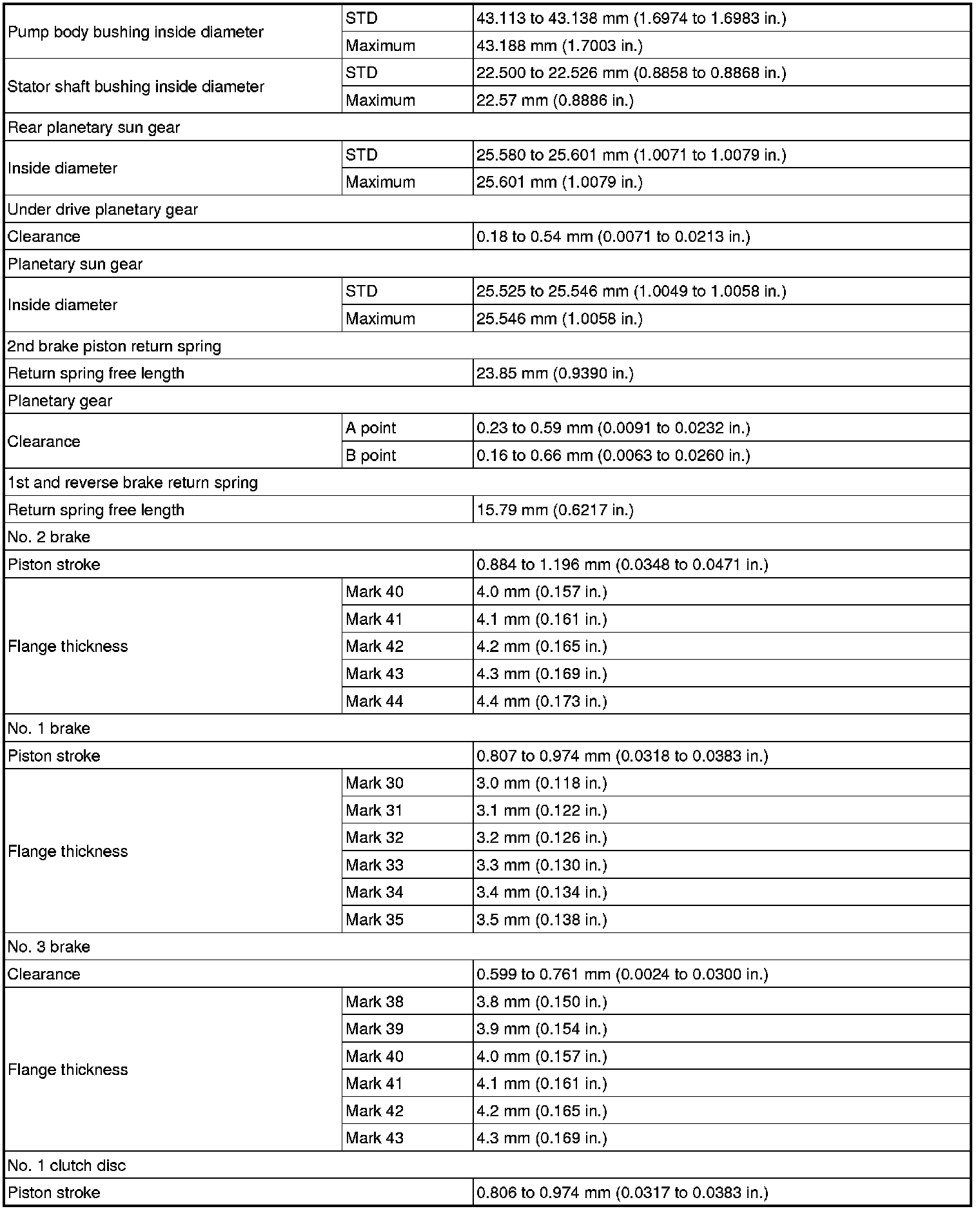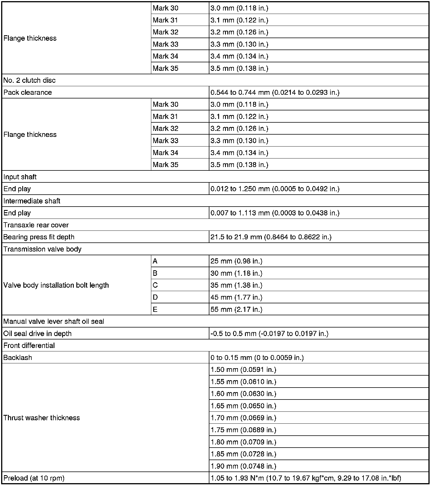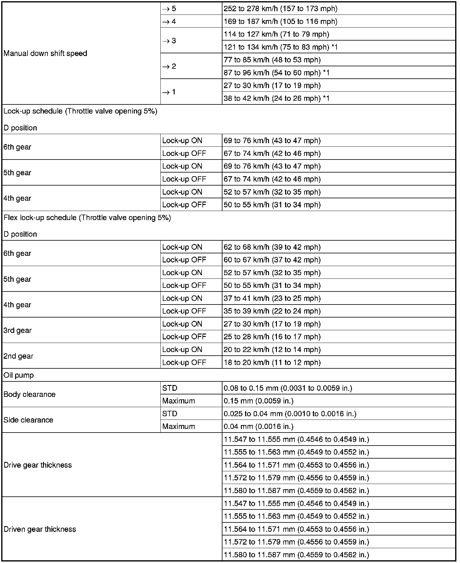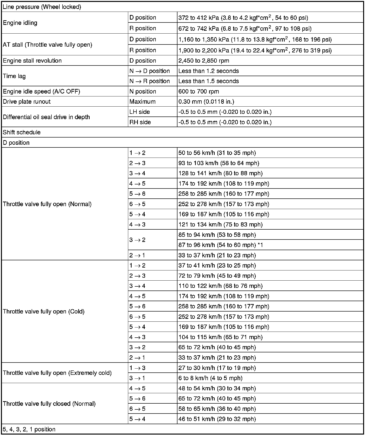 SERVICE SPECIFICATIONS: U660E AUTOMATIC TRANSAXLE: SERVICE DATA