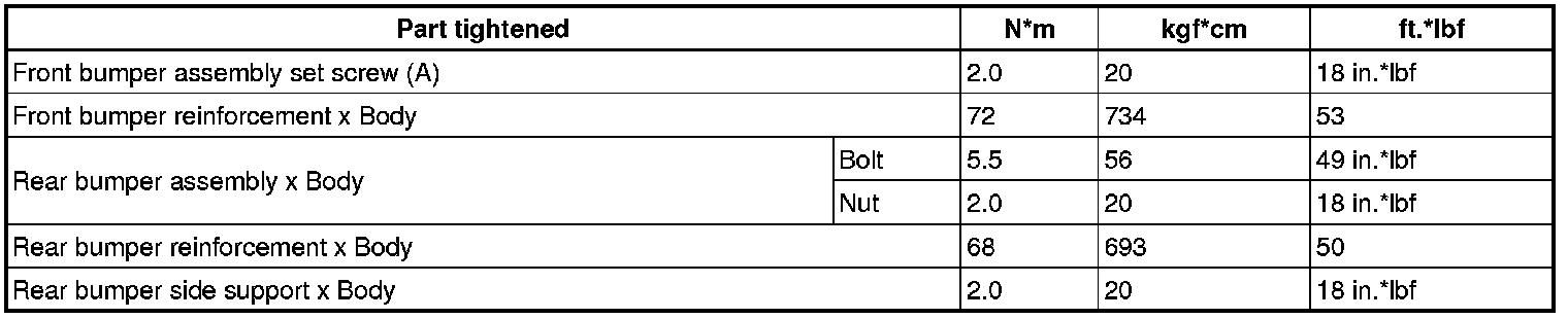 SERVICE SPECIFICATIONS: EXTERIOR: TORQUE SPECIFICATIONS