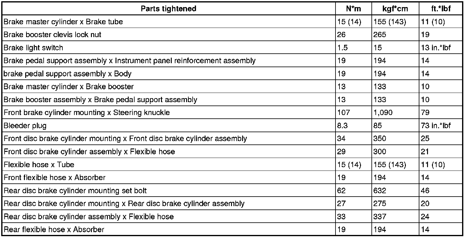 SERVICE SPECIFICATIONS: BRAKE: TORQUE SPE