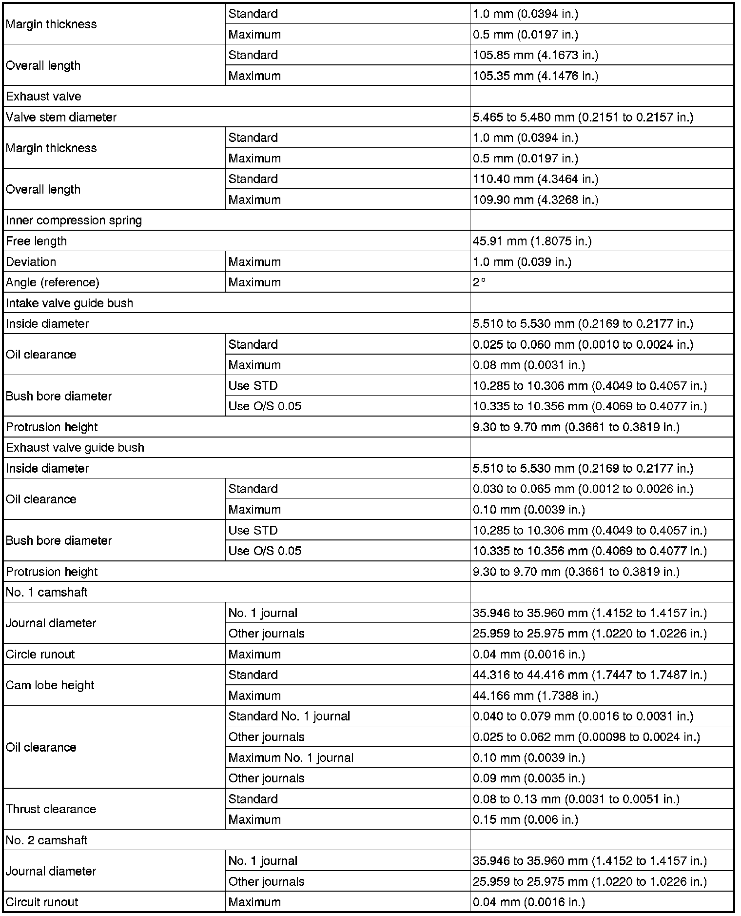 SERVICE SPECIFICATIONS: 2GR-FE ENGINE MECHANICAL: SERVICE DATA