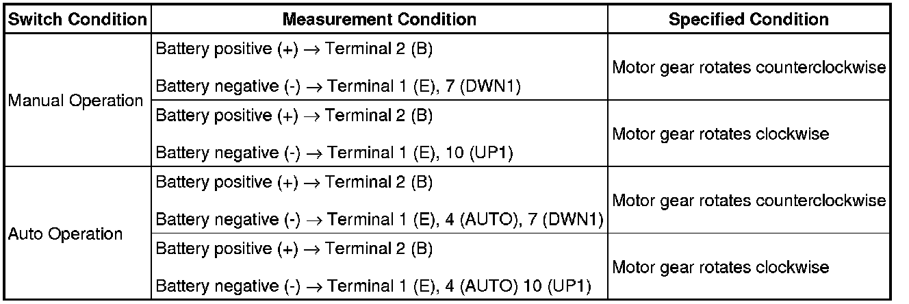 WINDSHIELD / WINDOWGLASS: POWER WINDOW REGULATOR MOTOR: INSPECTION