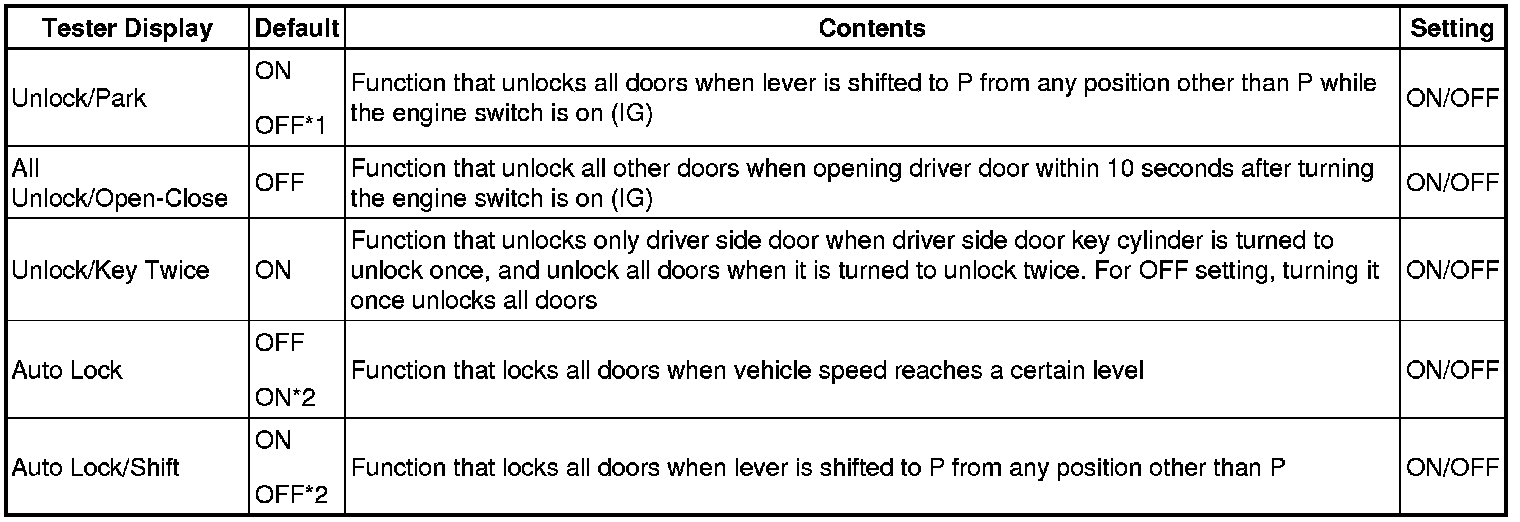 DOOR LOCK: POWER DOOR LOCK CONTROL SYSTEM: CUSTOMIZE PARAMETERS