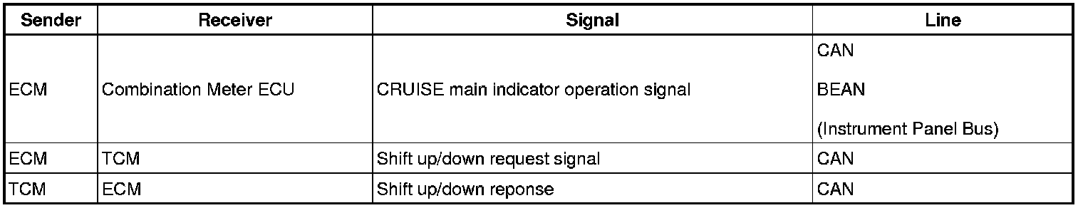 - The ECM receives signals such as ON-OFF, SET / COAST, RESUME / ACCEL, and CANCEL from the cruise control main switch and executes them.