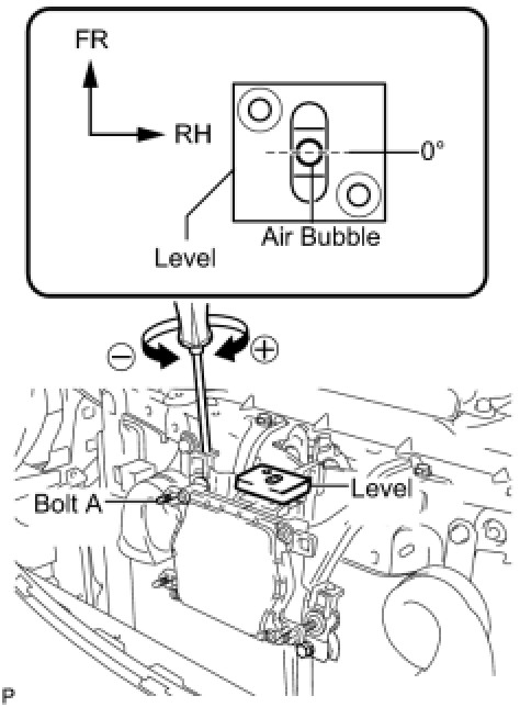 If the bubble is not within the red frame, use a screwdriver to adjust bolt A until the air bubble is within the red frame.