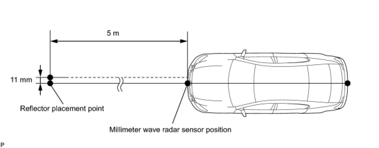 (3) Using a tape measure, measure 11 mm (0.433 in.) to the right of the 5 m (16.41 ft.) position as shown in the illustration. Place the reflector at that position.