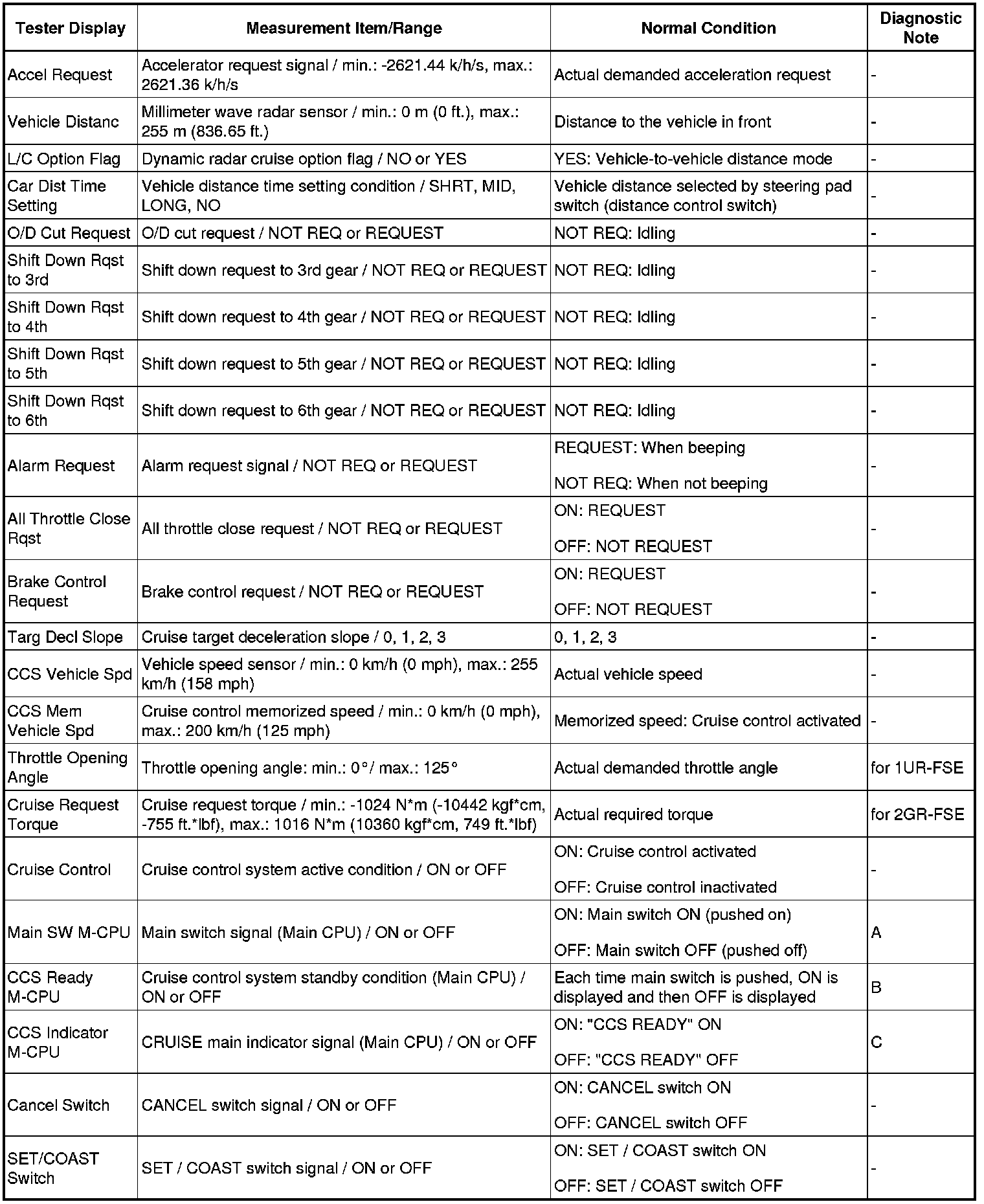 CRUISE CONTROL: DYNAMIC RADAR CRUISE CONTROL SYSTEM: DATA LIST / ACTIVE TEST
