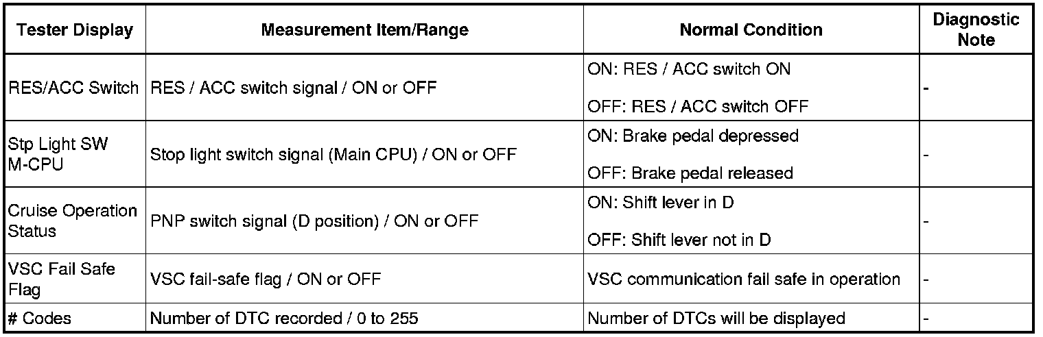 HINT: Using the Techstream to read the Data List allows the values or states of switches, sensors, actuators and other items to be read without removing any parts. This non-intrusive inspection can be very useful because intermittent conditions or signals may be discovered before parts or wiring is disturbed. Reading the Data List information early in troubleshooting is one way to save diagnostic time.