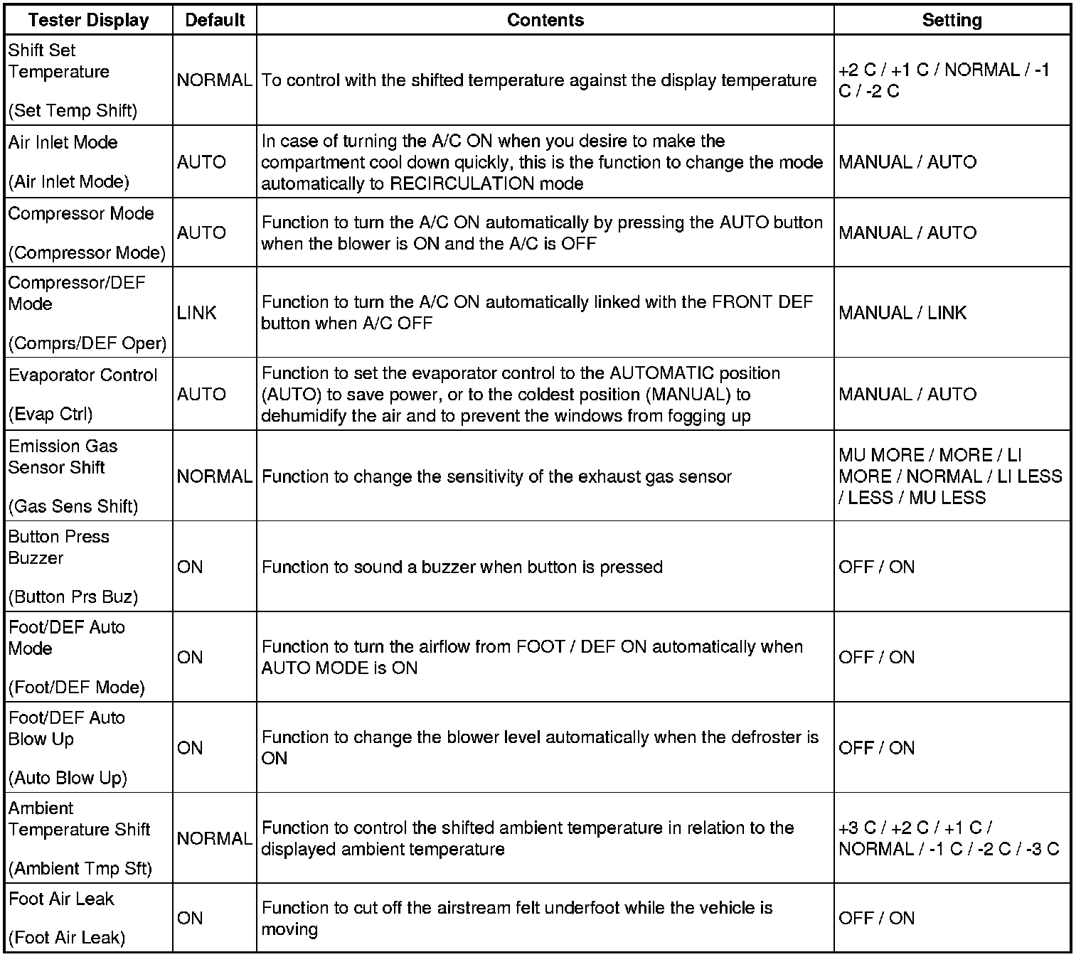 AIR CONDITIONING: AIR CONDITIONING SYSTEM: CUSTOMIZE PARAMETERS