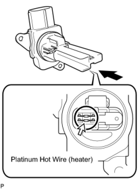 (a) Perform a visual check for any foreign matter on the platinum hot wire (heater) of the mass air flow meter shown in the illustration.