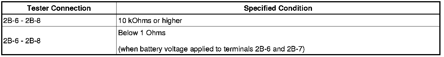 (1) Apply battery voltage to both terminals. Check that the pump operates.