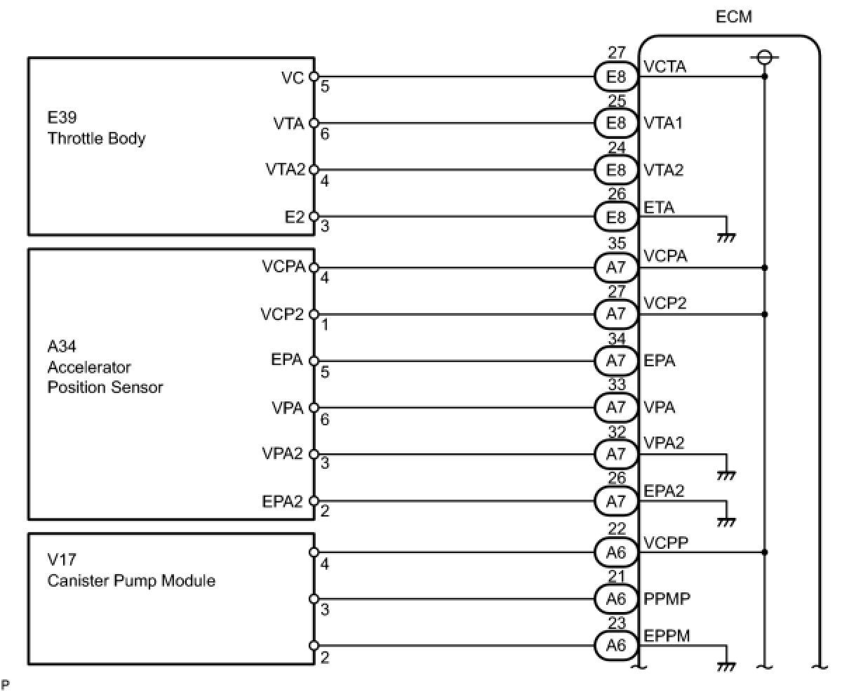 The ECM constantly generates 5 V power from the battery voltage supplied to the +B (BATT) terminal to operate the microprocessor. The ECM also provides this power to the sensors through the VC output circuit.