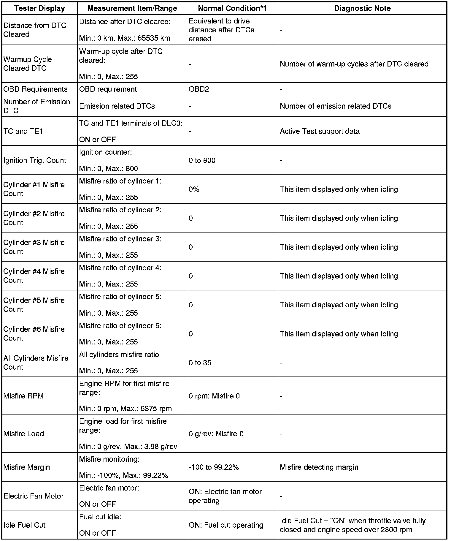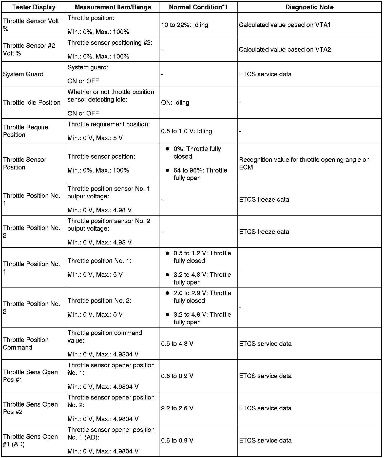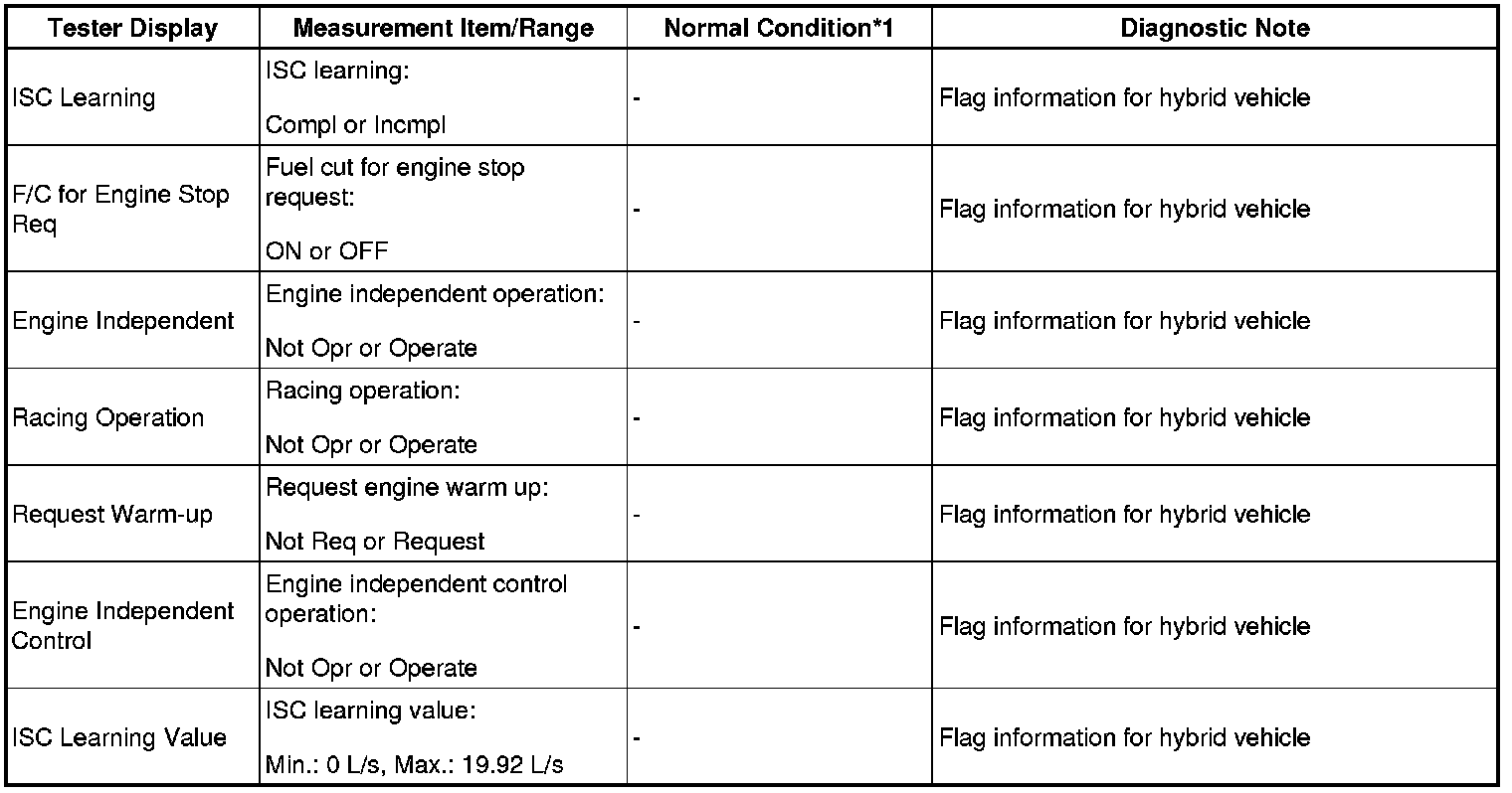 - *1: If no idling conditions are specified, the transmission gear selector lever should be in the P or N position, and the A/C switch and all accessory switches should be off.