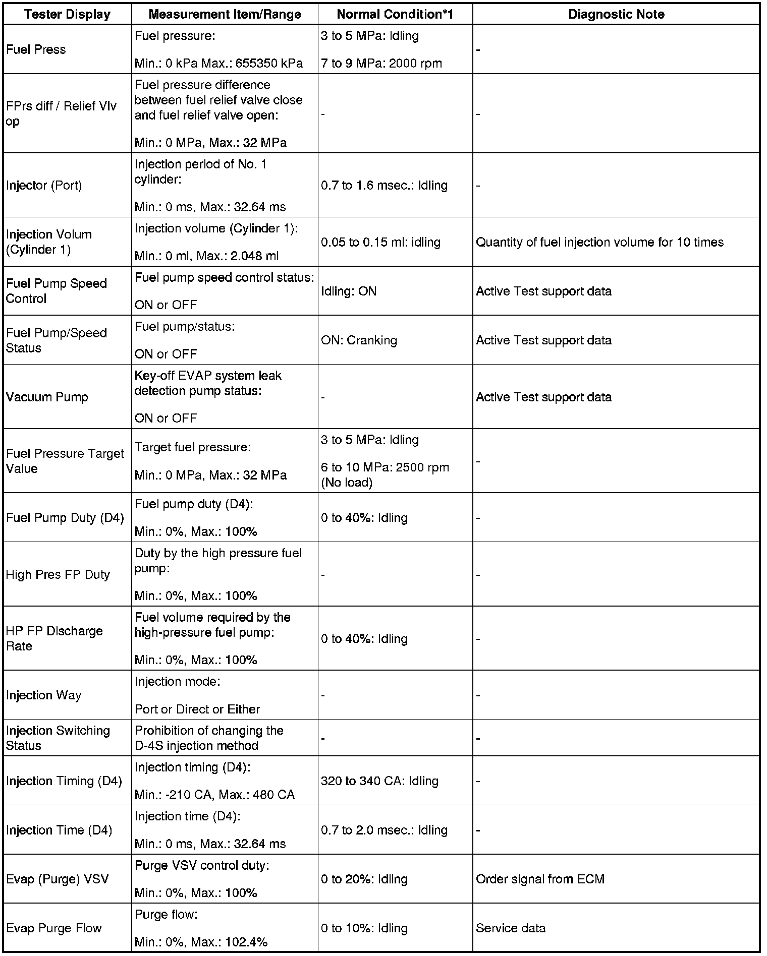 HINT: By reading the Data List displayed on the Techstream, you can check values, including those of the switches, sensors and actuators, without removing any parts. Reading the Data List as the first step of troubleshooting is one method of shortening diagnostic time.