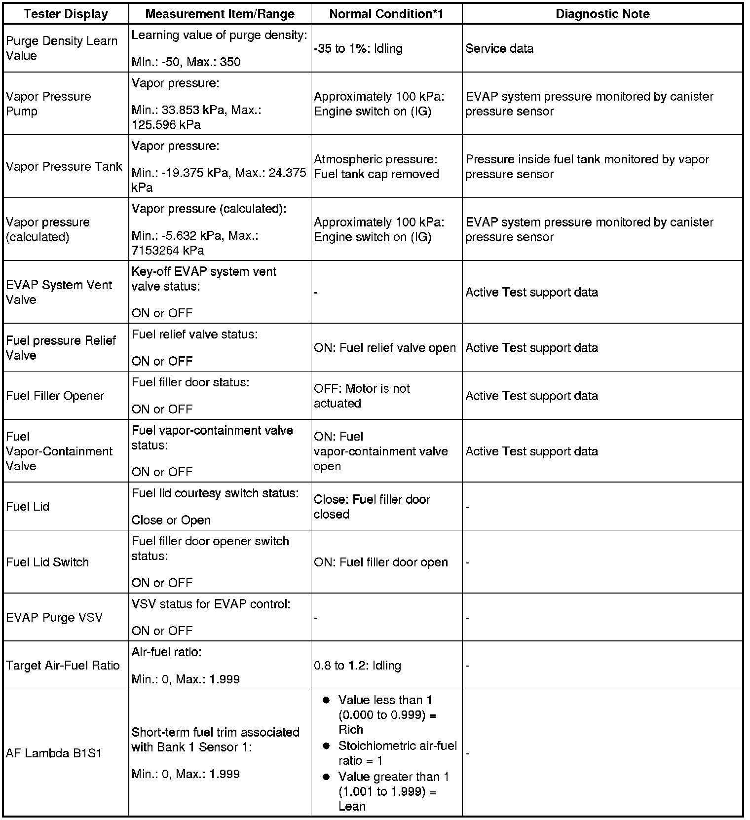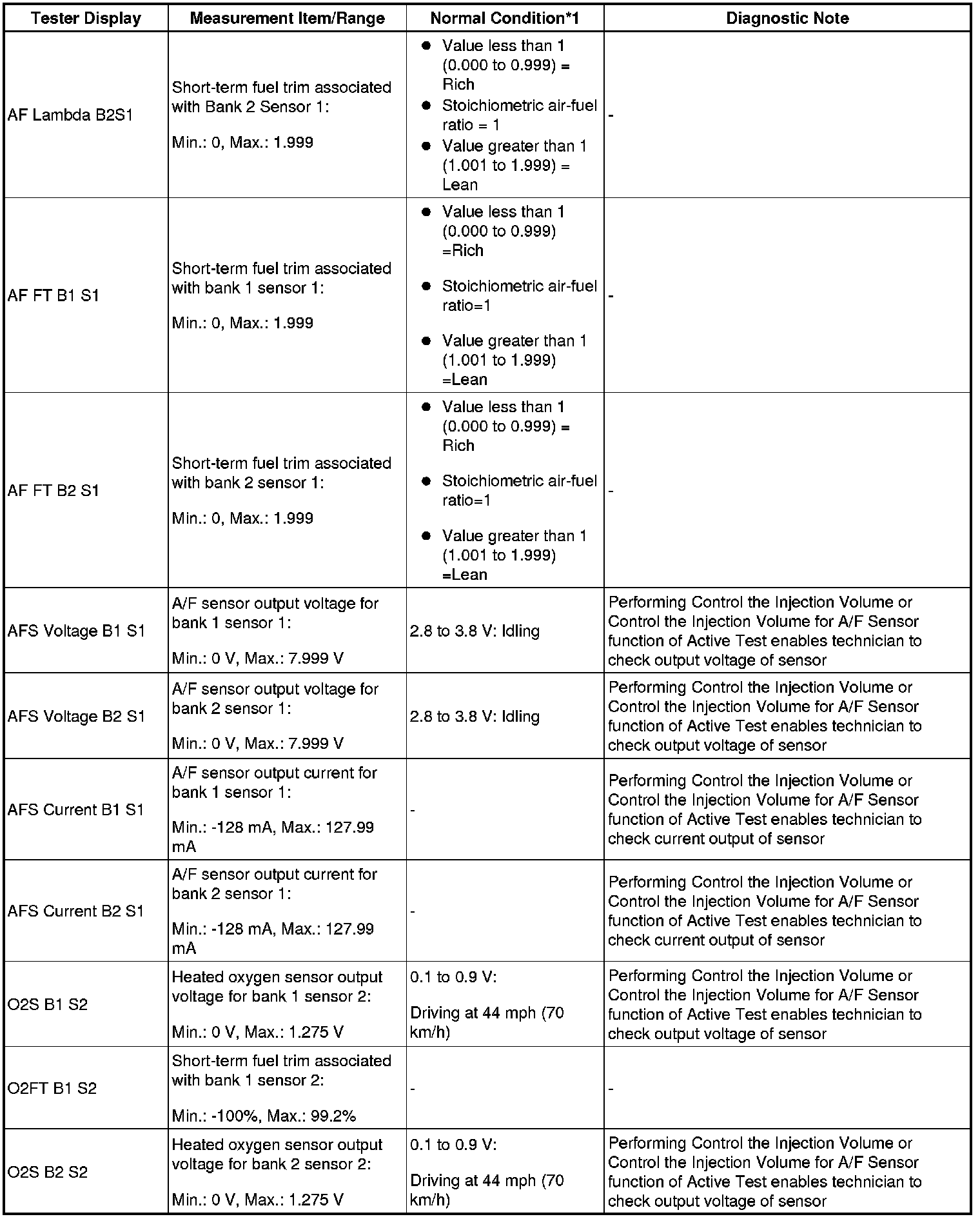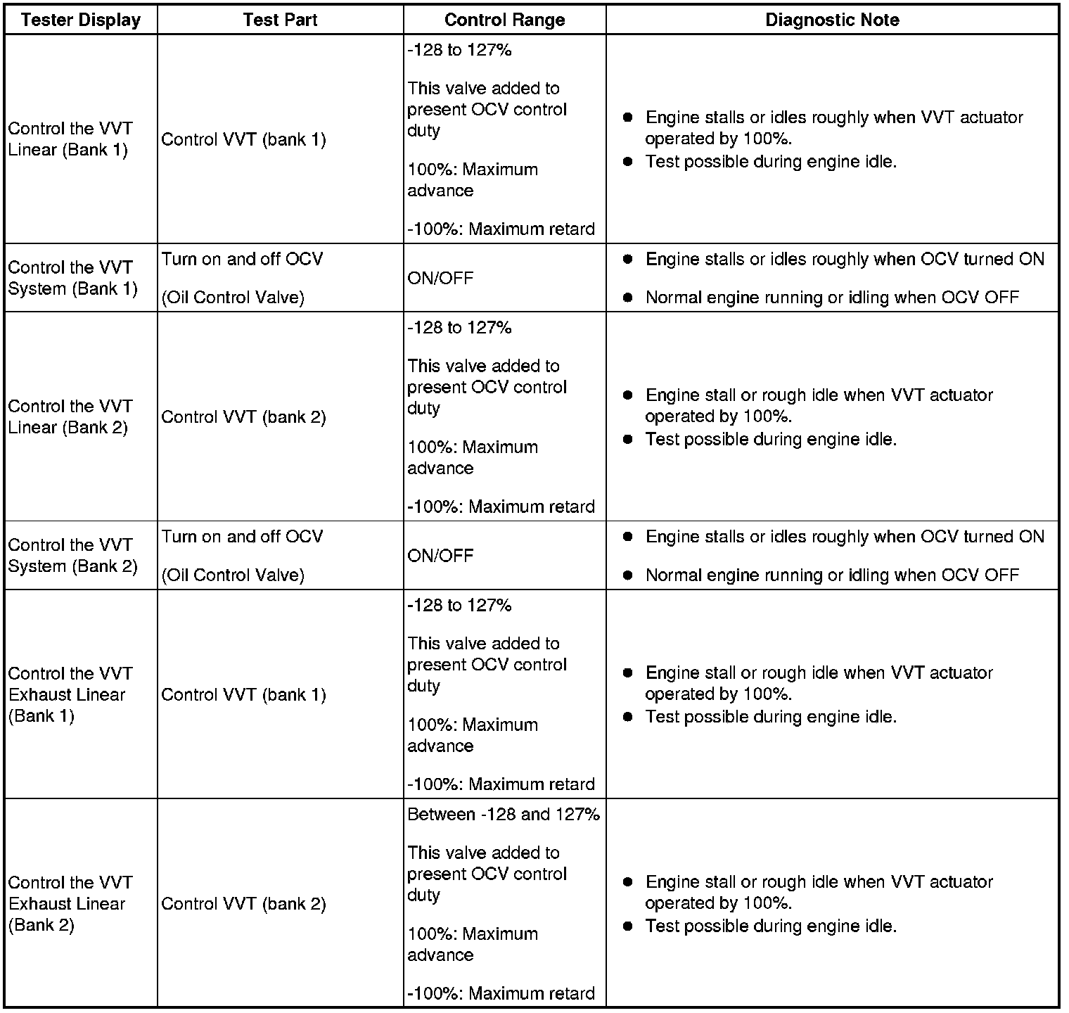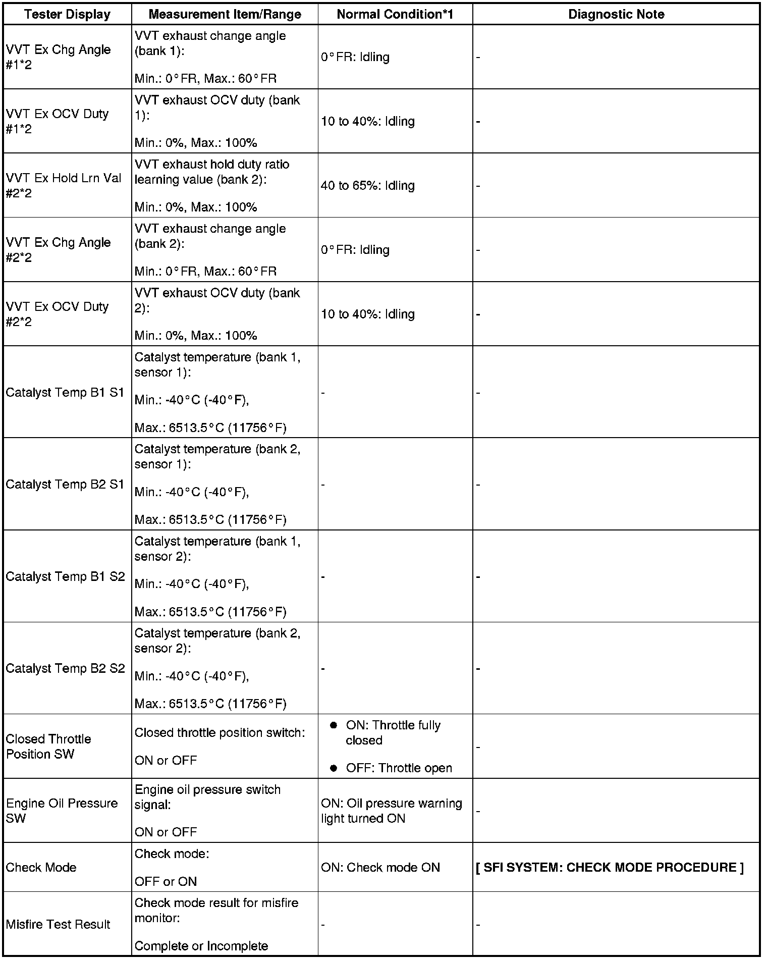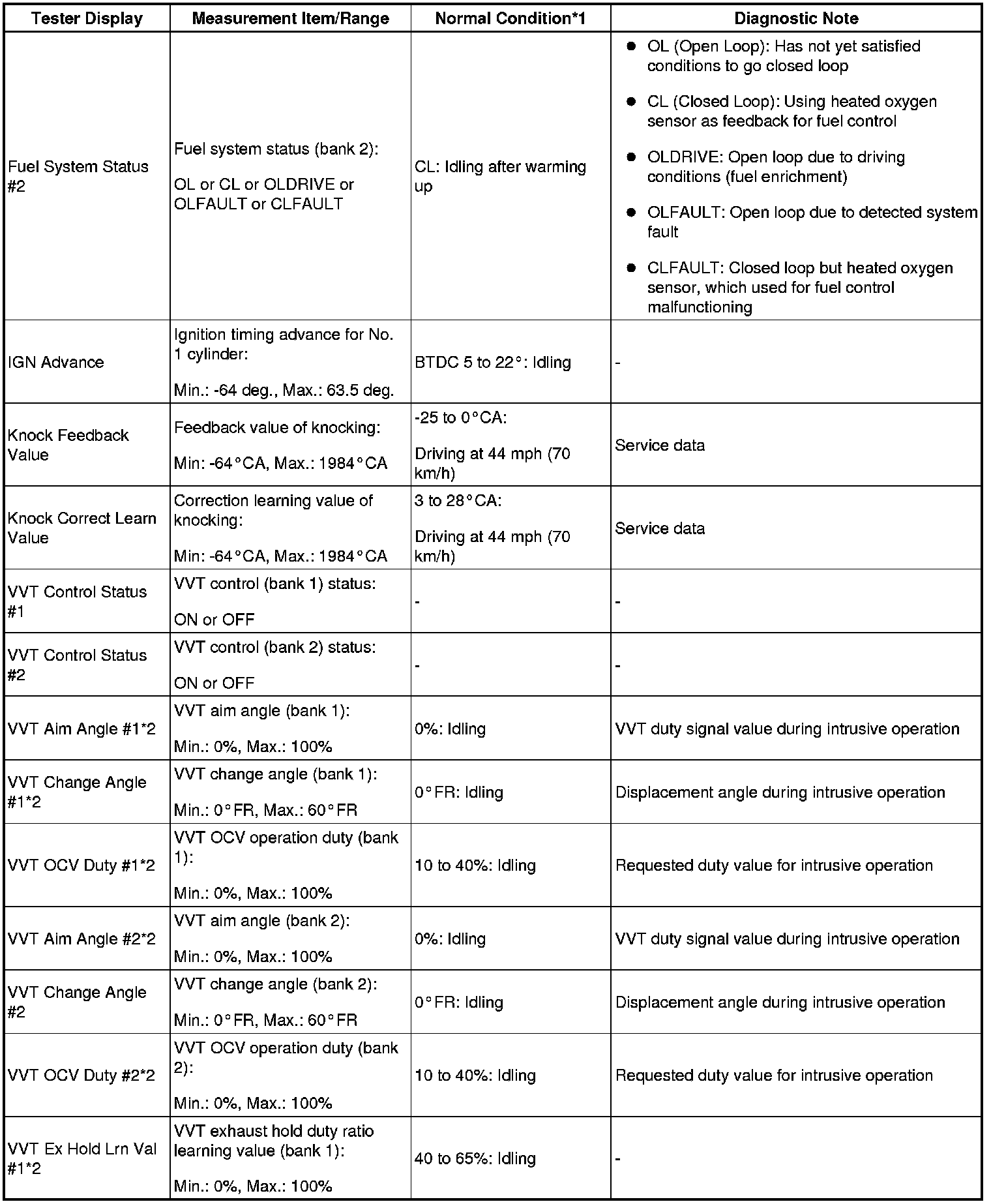 - *2: Data List values are only displayed when performing the following Active Test: VVT B1, VVT B2, VVT EX B1 and VVT EX B2. For other Active Test, the Data List value will be 0.