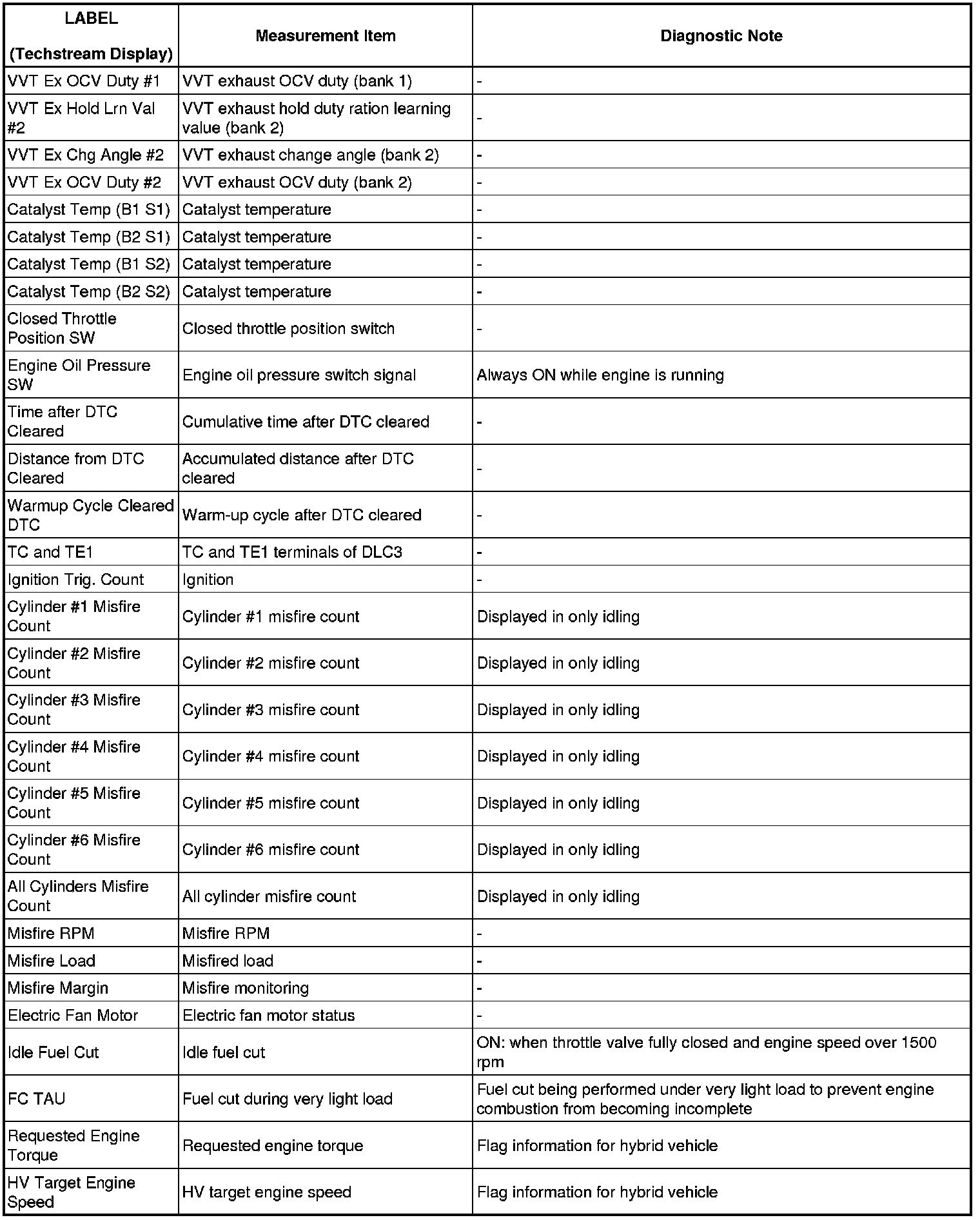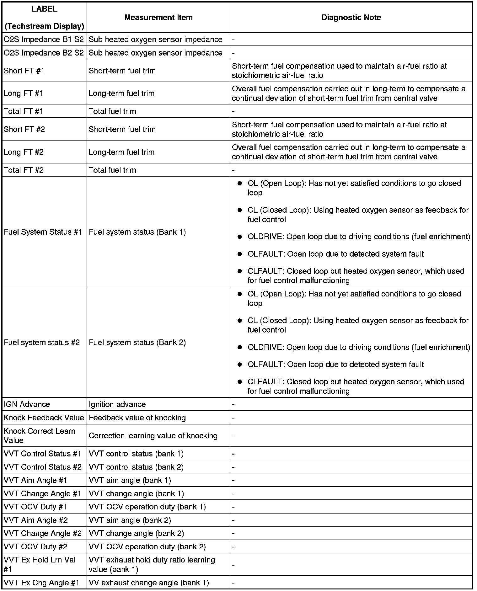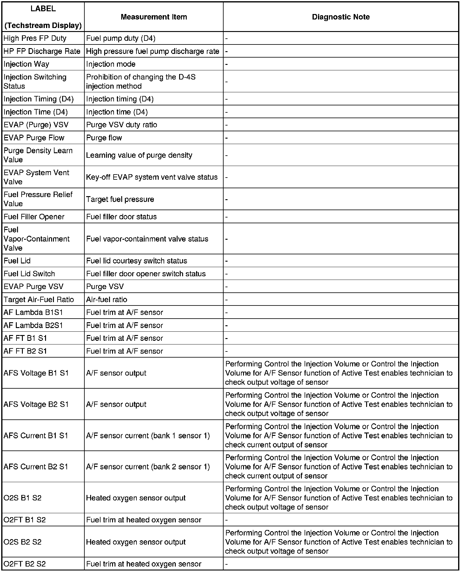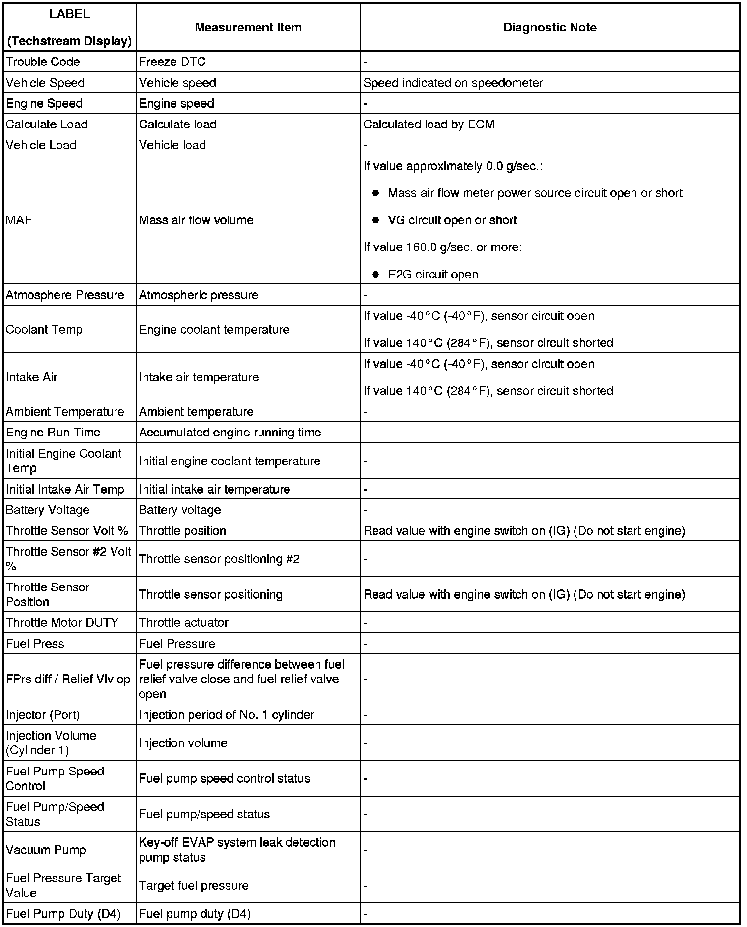 2GR-FSE ENGINE CONTROL SYSTEM: SFI SYSTEM: FREEZE FRAME DATA