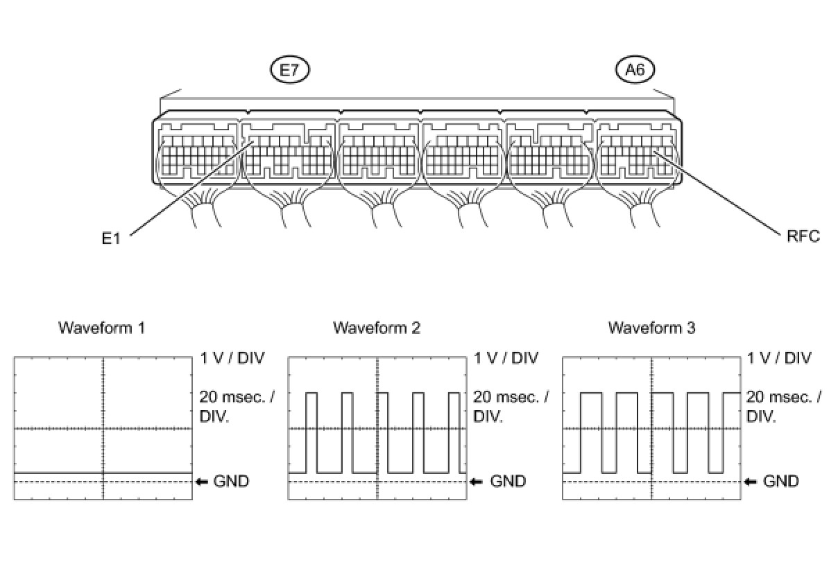(3) Using the Techstream, check the waveform between terminals A6-10 (RFC) and E7-7 (E1) of the ECM.