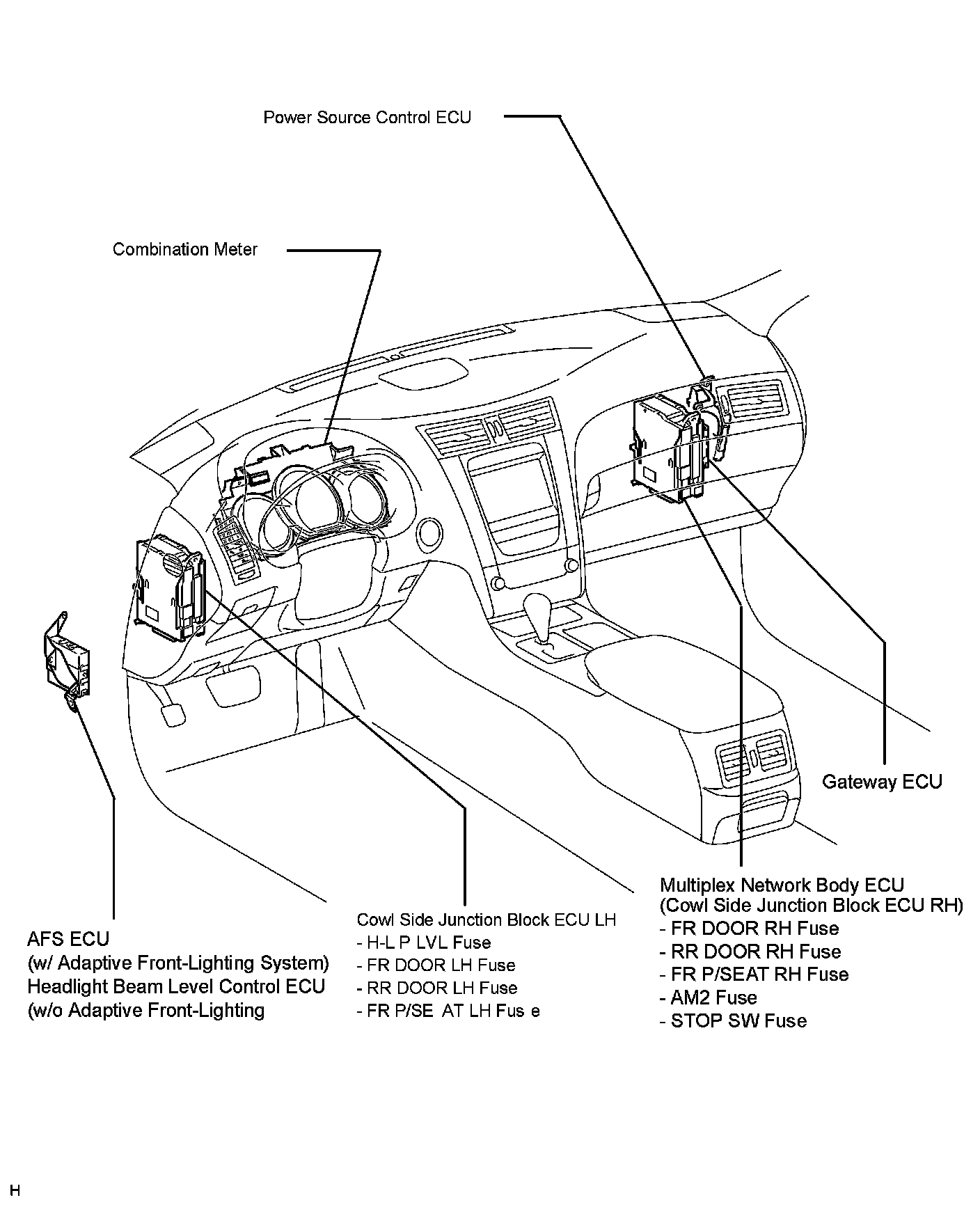 Headlamp Alignment Control Module: Locations
