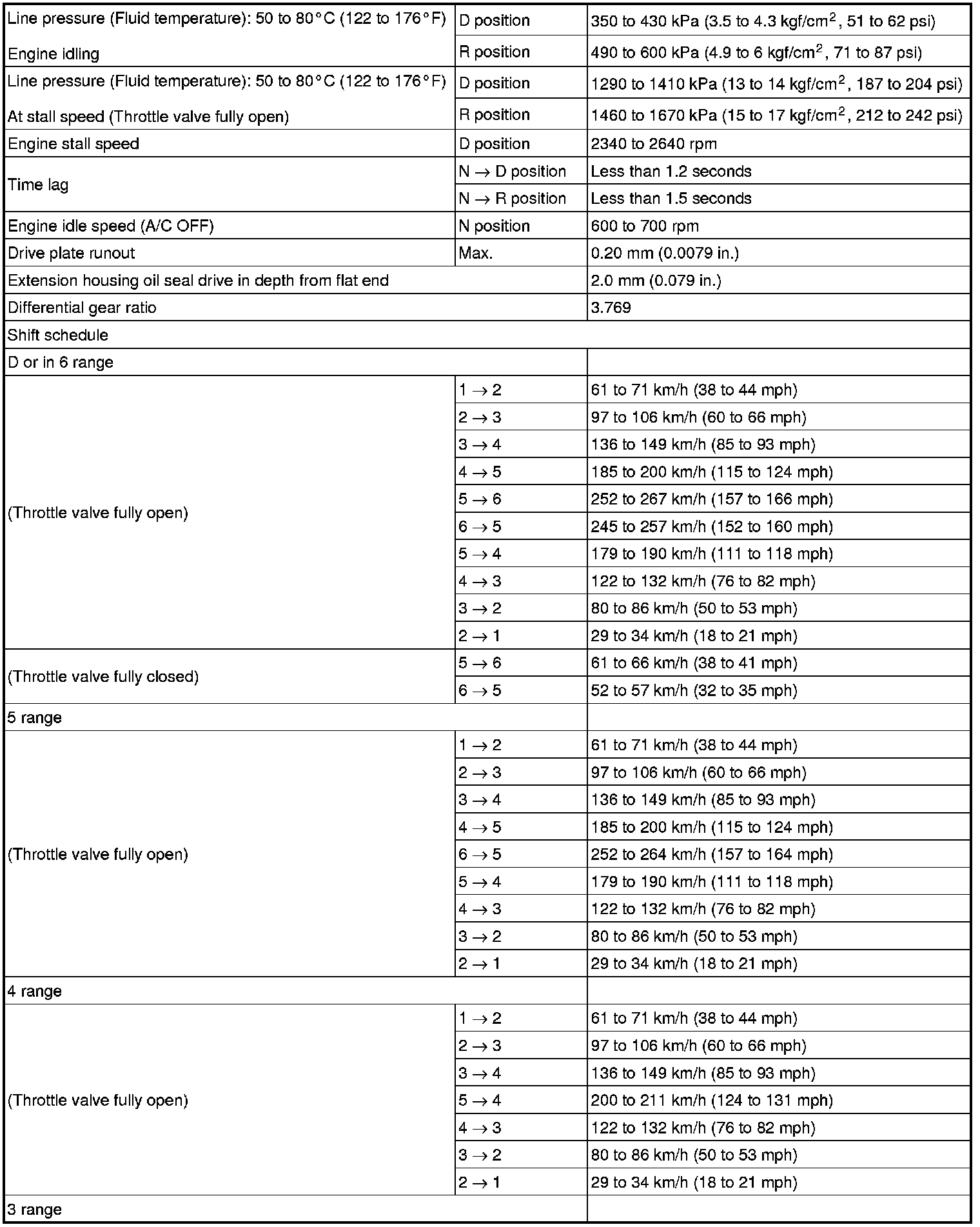 - All shift point values indicated in the above table are actual values. Therefore, if checking a shift point with a chassis dynamometer, keep in mind that there is a range of error in the chassis dynamometer indication.