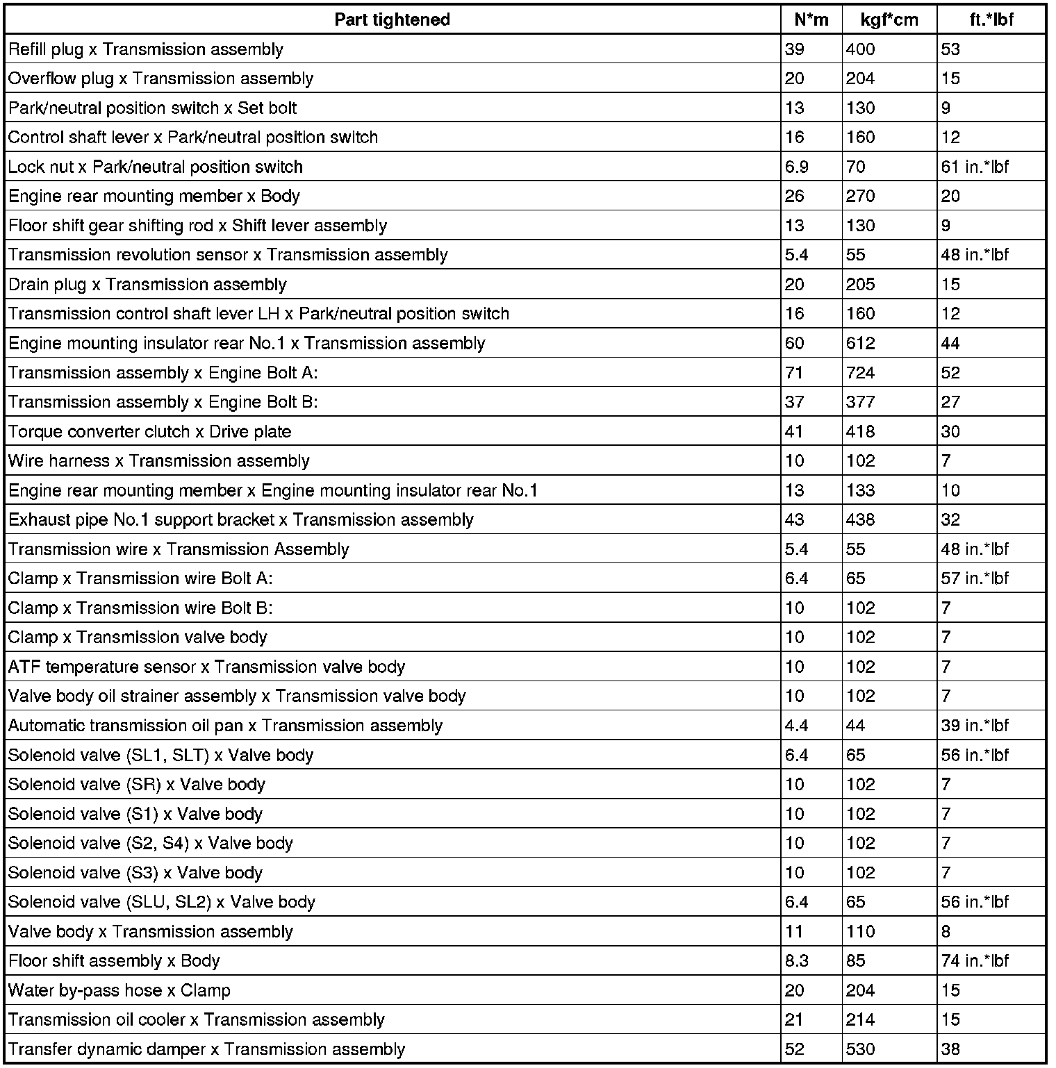 SERVICE SPECIFICATIONS: A760H AUTOMATIC TRANSMISSION: TORQUE SPECIFICATIONS