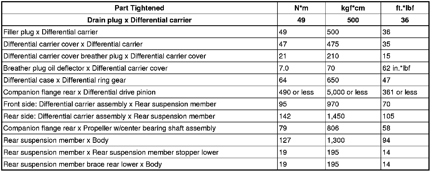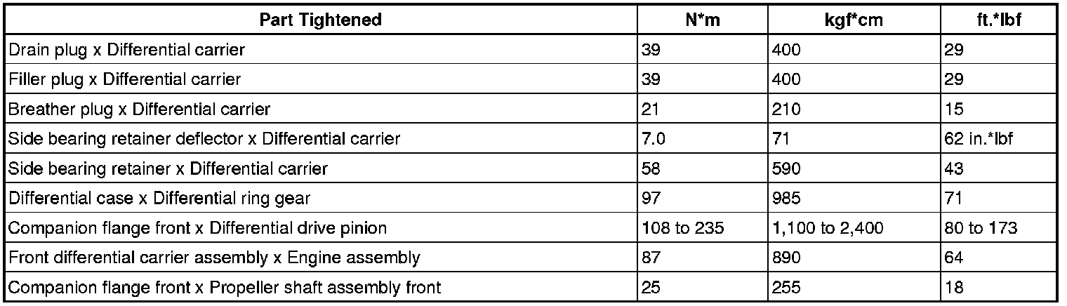 SERVICE SPECIFICATIONS: DIFFERENTIAL: TORQUE SPECIFICATIONS