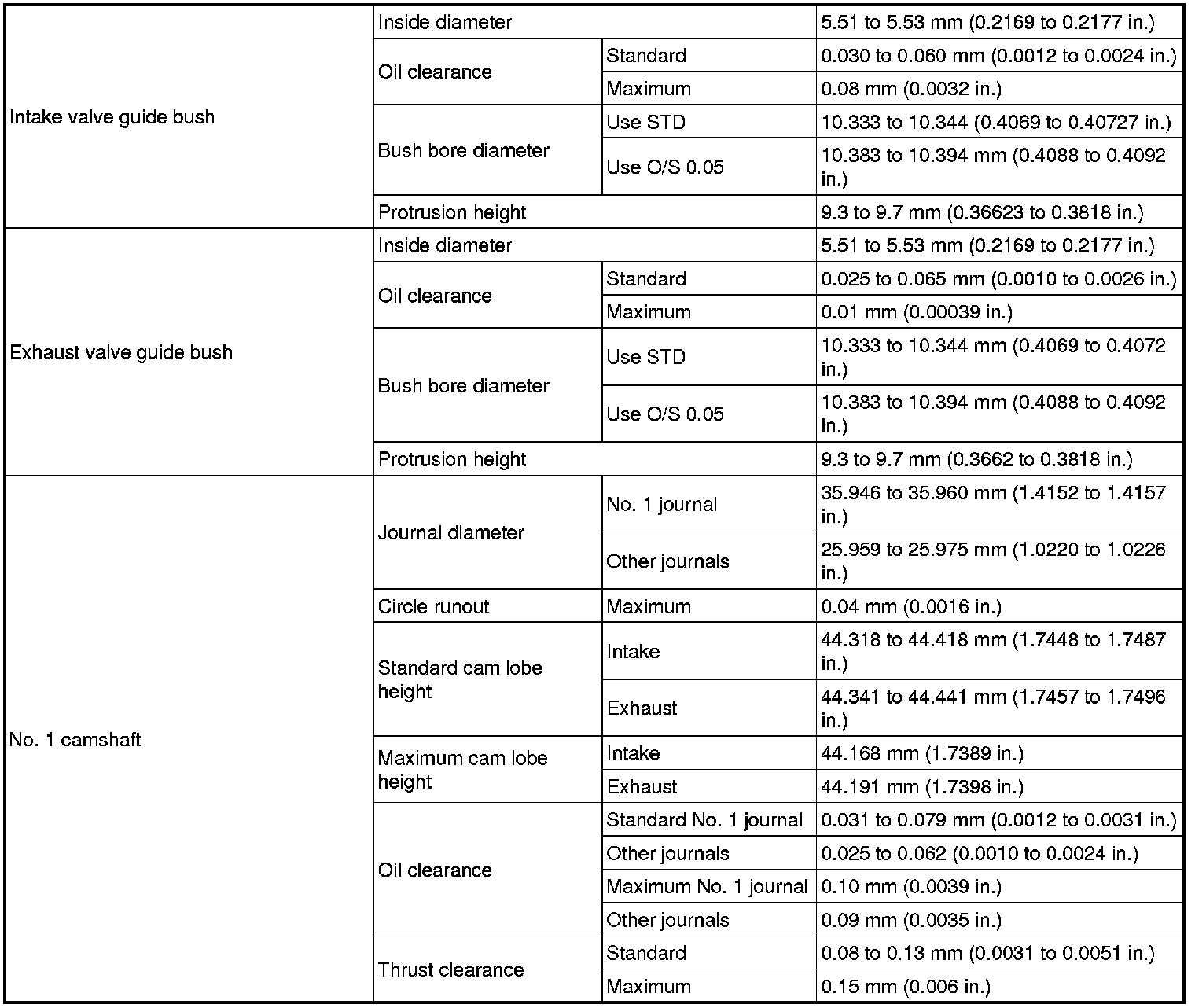 SERVICE SPECIFICATIONS: 2GR-FSE ENGINE MECHANICAL: SERVICE DATA