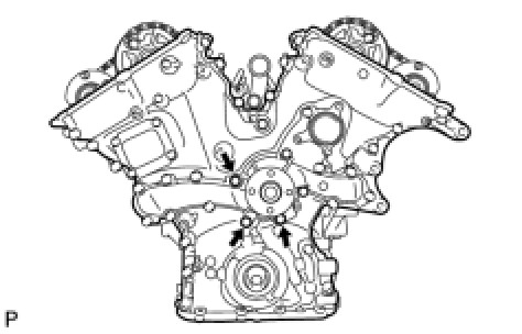 Temporarily tighten the timing chain cover with the 25 bolts and 2 nuts.
