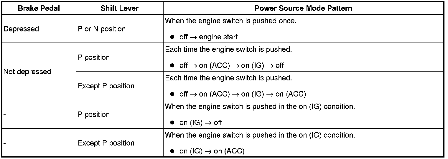 (b) This system has different power source mode patterns depending on the brake pedal condition and shift lever position.
