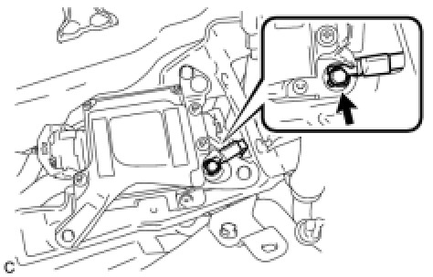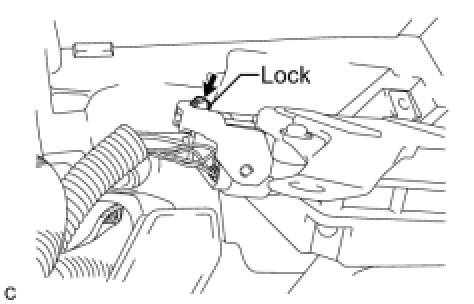 (c) Connect the power steering ECU connector on the left side of the vehicle and securely lock the lock lever as shown in the illustration.