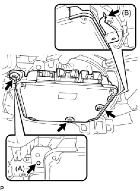 - Securely engage the hook (B) of the steering control ECU with the blower assembly.